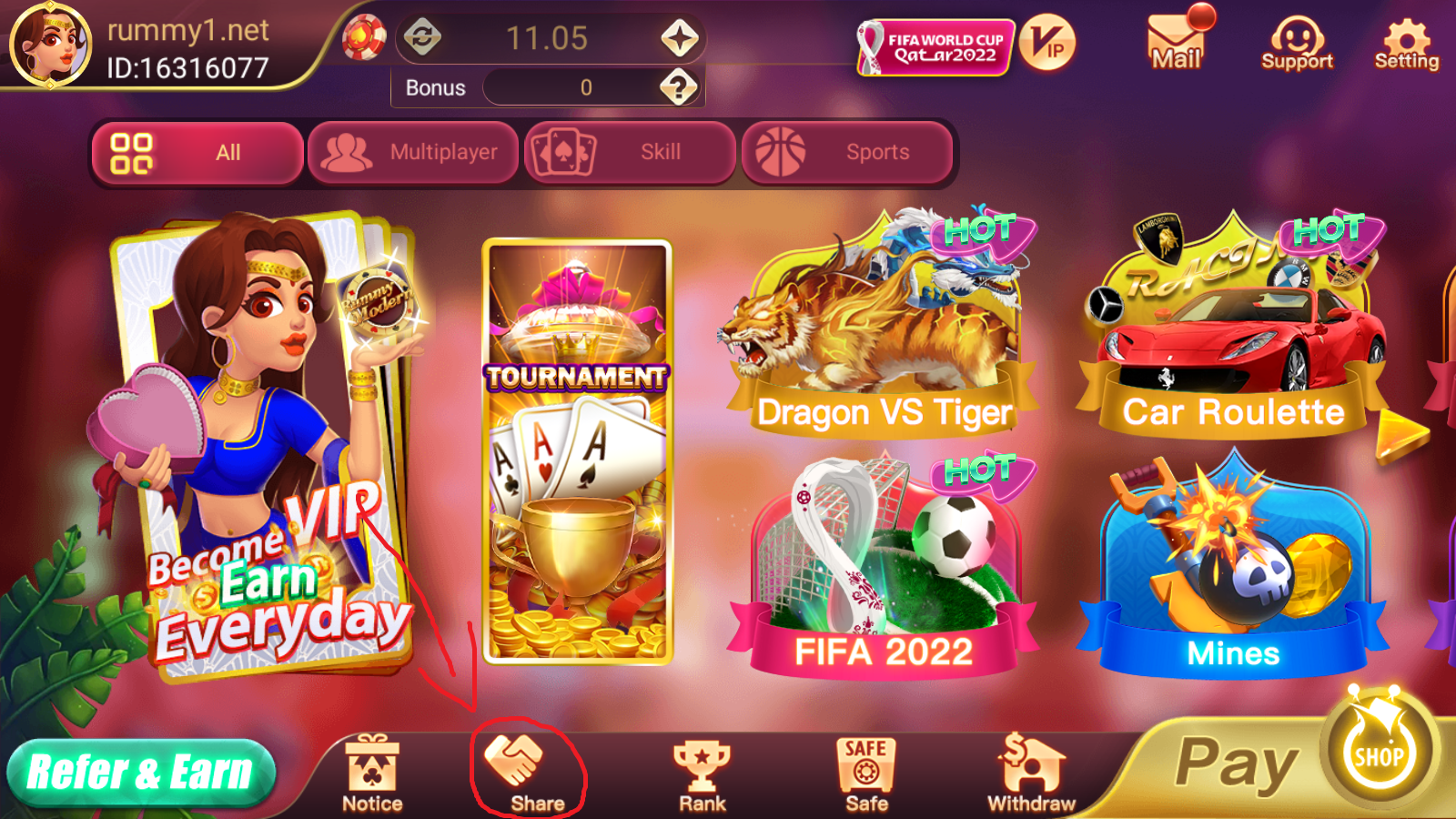 1. Enter the game and click "Share"